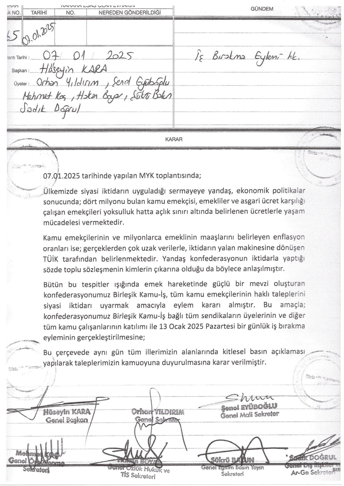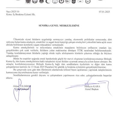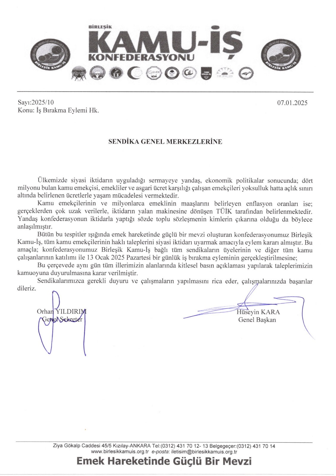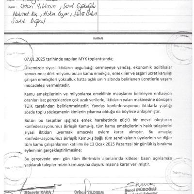 Milyonlarca kamu emekçisi ve emeklisinin yaşam şartlarını her geçen gün daha da katlanılmaz kılan; vergide adaletsizliğe, TÜİK’in siyasal manipülasyona dayalı rakamlarına, gerçek grevli toplu sözleşme yasası ile emekçilerle masaya oturmak varken, tüm ipleri siyasi iktidarın eline veren sahte sendika yasasına, bizleri kayıt dışı çalıştırma mantığına mahkum eden, ek ve yan ödemelerimizin taban ve emekli aylıklarımıza dahil edilmediği ve bu sebeple emekli aylıklarımızda %55’e varan kayıplarımıza karşı;