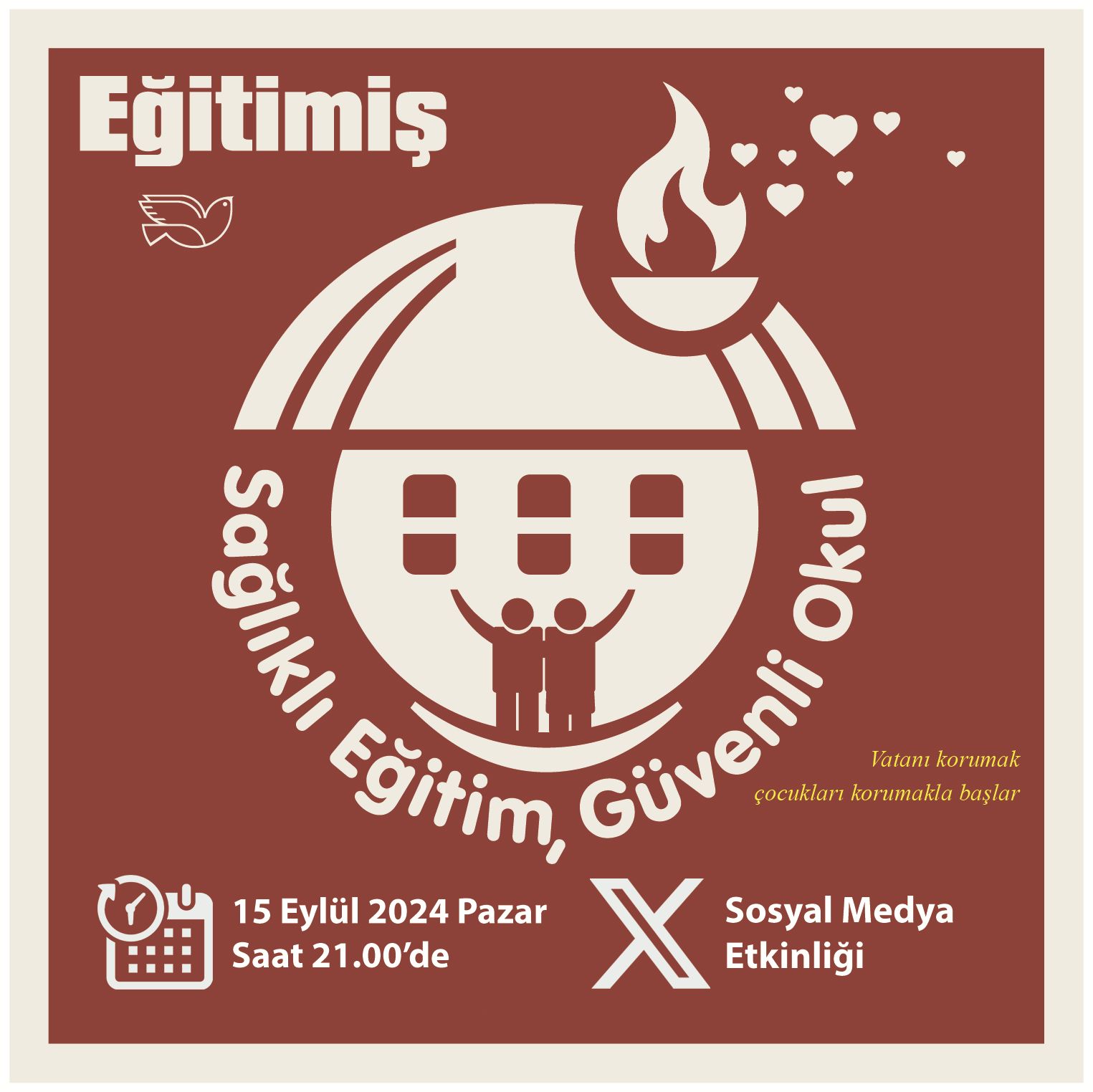 Pa, 09/15/2024 - 20:26 tarihinde egitimisankara tarafından gönderildi 15 Eylül 2024 Pazar Günü Saat 21:00 de Sağlıklı Eğitim Güvenli Okul için Twitter (X) da buluşuyoruz. Sesimizi yükseltiyoruz!.. Tarih Aralığı Pa, 09/15/2024 - 21:00 - Pt, 09/16/2024 - 20:00
