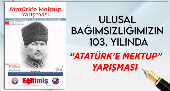 Eğitim-İş, Büyük Önder Mustafa Kemal Atatürk'ün, Samsun'a çıkarak, bağımsızlık ve özgürlük meşalesini yakmasının 103. Yıldönümü nedeniyle, “Ulusal Bağımsızlığın 103. Yılında Gençliğin Ata’sına Özlemi” konulu mektup yarışması düzenledi.