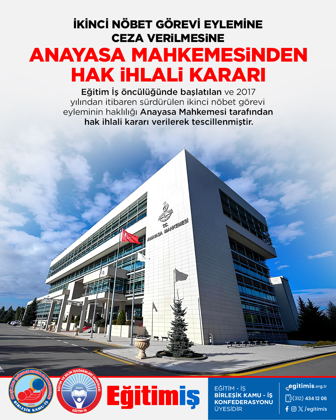 gerekçesine yer vermiş ve sendikal eylem kararına disiplin cezası verilemeyeceğine işaret ederek, hak ihlali kararı vermiştir.