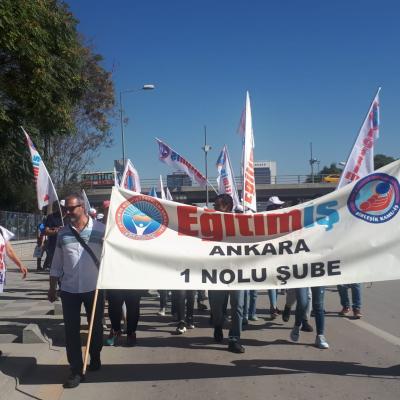 Eğitim-İş olarak, mesleğimizin onuruna saldırı niteliğindeki sözde meslek kanunun geri çekilmesi, öğretmene saygı, öğretmene yakışır kanun, eğitime bütçe, eğitim emekçilerine insan onuruna yakışır ücret talebiyle Ulus’taki ilk Meclis binasının önünden Anıtkabir’e yürüdük.